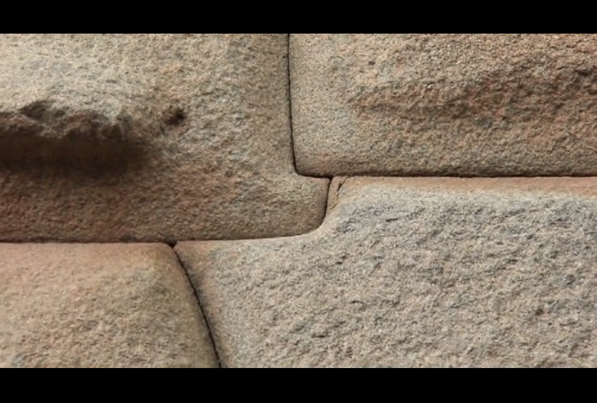 As pedras são de um encaixe tão preciso que foram moldadas como se esse povo fosse capaz de amolecer a pedra e então cortá-la como se fosse um marshmelow. Dessa forma as encaixavam para os lados e para cima com tamanha precisão que você não consegue passar um fio de cabelo humano por ela. Essas pedras tem uma espessura de 1,82m.