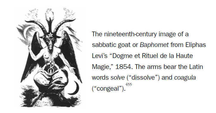 A imagem do século XIX de um bode sabático ou Baphomet de Eliphas Levi – Dogme et Rituel de la Haute Magie, 1854. Os braços possuem as palavras em Latim: solve (dissolver) e coagula (congelar)