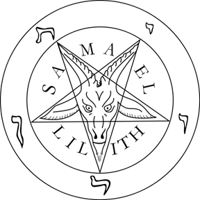 O pentagrama do bode original primeiramente apareceu no livro “La Clef de la Magie Noire”, pelo ocultista francês Stanislas de Guaita, em 1897. Esse símbolo seria mais tarde sinônimo a Baphomet, e é comumente referido como o Bode Sabático. Samael é uma figura da cultura Talmúdica e Lilith, um demônio fêmea da mitologia judaica. As letras hebraicas nas cinco pontas do pentagrema formam a palavra Leviatã, uma criatura mítica da cultura judaica. Esse símbolo foi mais tarde adaptado pela Igreja de Satanás em 1969 e oficialmente chamado de Sigilo de Baphomet.