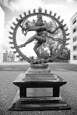 A estátua de Shiva no CERN contém a inscrição de uma citação feita pelo físico Fritjof Capra, assim: